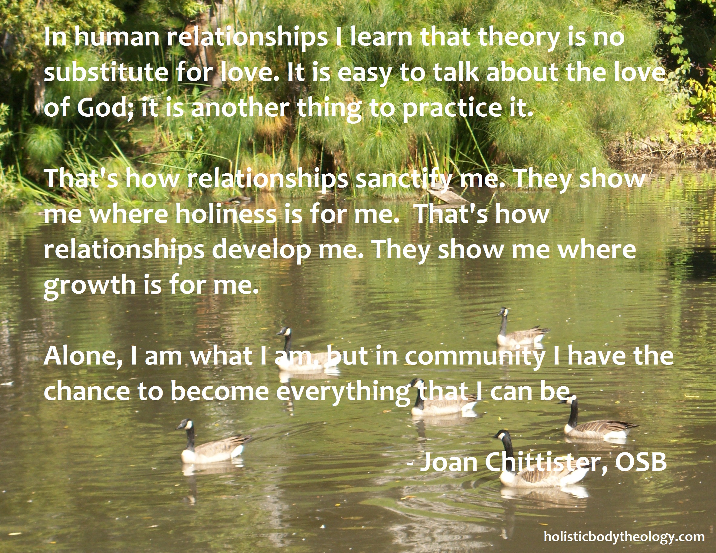 Holistic body theology, then, is about realizing our embodied holiness in our everyday lives. This is hard enough for those of us who live out our lives in quiet and relative obscurity. How much greater the struggle for secure identity and wise discernment among the many messages of our culture when in the unique opportunity to create those messages for ourselves.